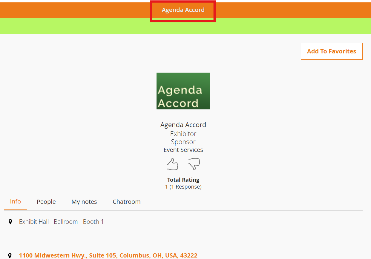- Company names will be listed under the exhibit hall map and can be clicked on to see more information about the company. See image below.