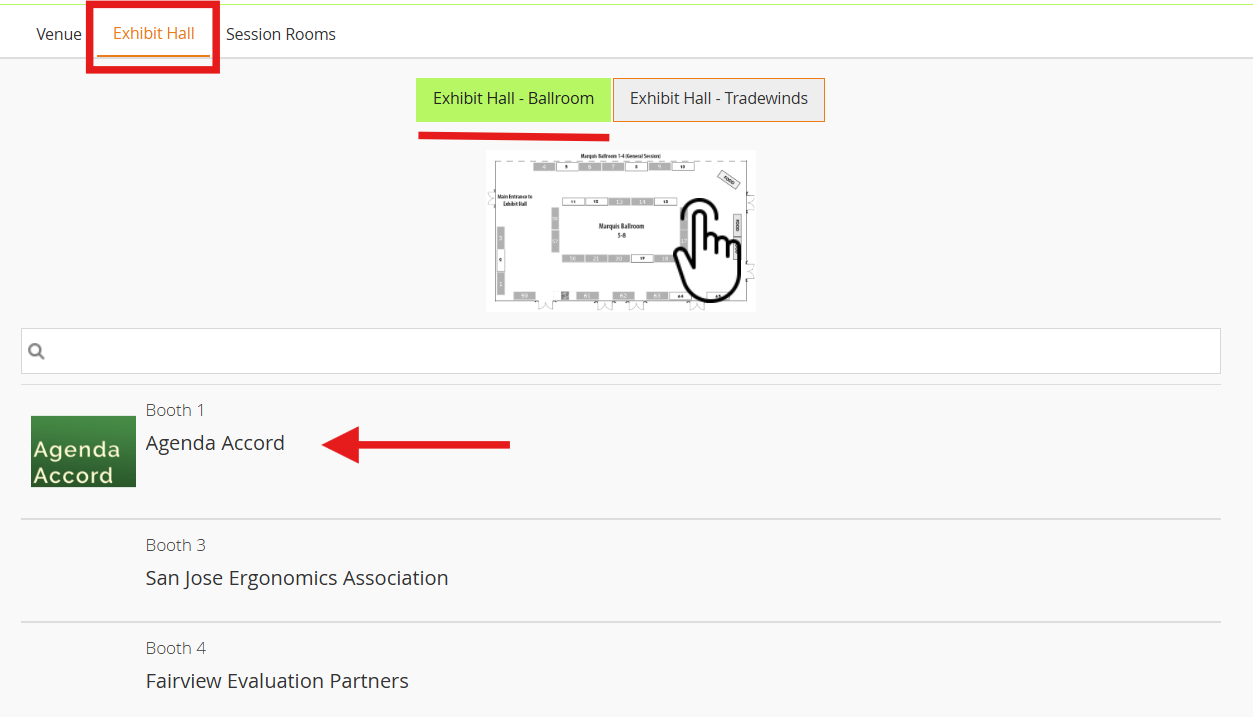 Exhibit Hall Maps can be used to display booth or table locations in your exhibit hall. If your app plan includes an interactive exhibit hall map, booths will be clickable on the map. The interactive map can be added on to other app plans as well for an additional fee.