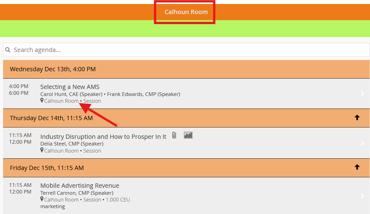 - Rooms are automatically created when locations are uploaded with your agenda. See the Room help article for more information on managing rooms.