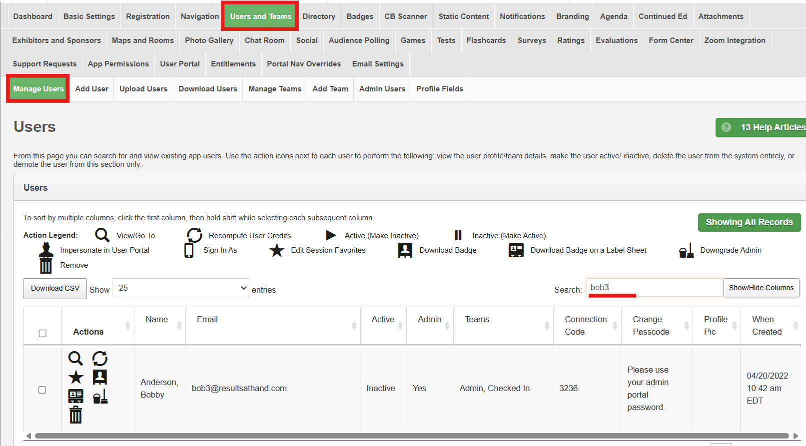 You may have an admin from a previous event who is now a regular attendee. Follow these instructions to change their status which will also allow you to see and edit their password.