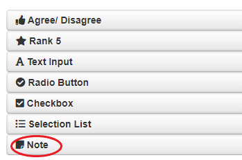 If you would like to add instructions or details about a question on your evaluation, you can do so by adding a Note . Select Note from the list of possible question types.