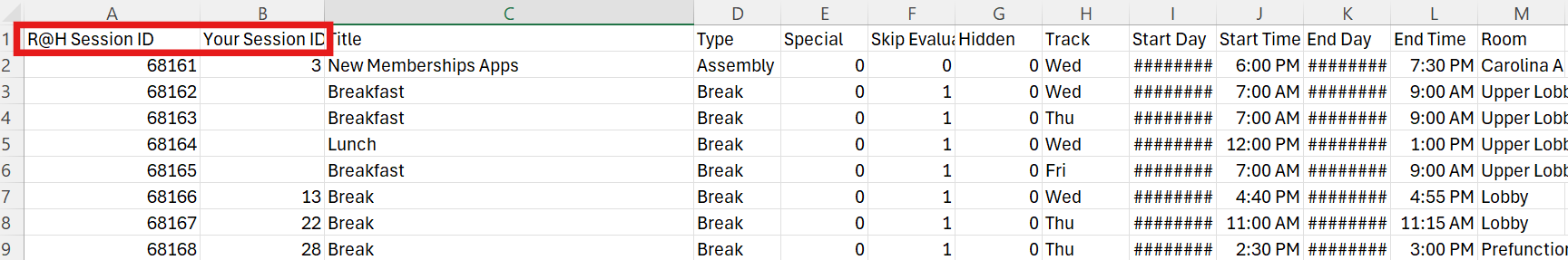 - Use the exact file used to originally upload or download the agenda from the portal by going to Agenda > Download Sessions