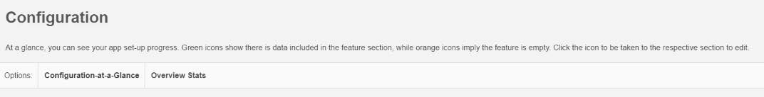 - The Configuration-at-a-Glance screen will serve as your visual app setup guide.
