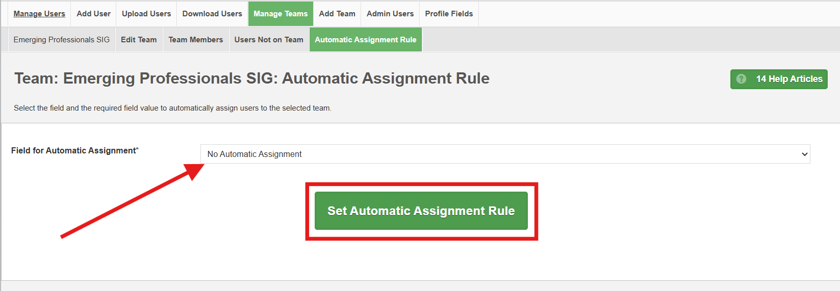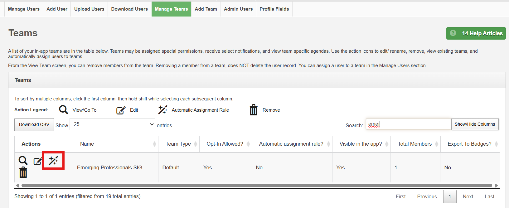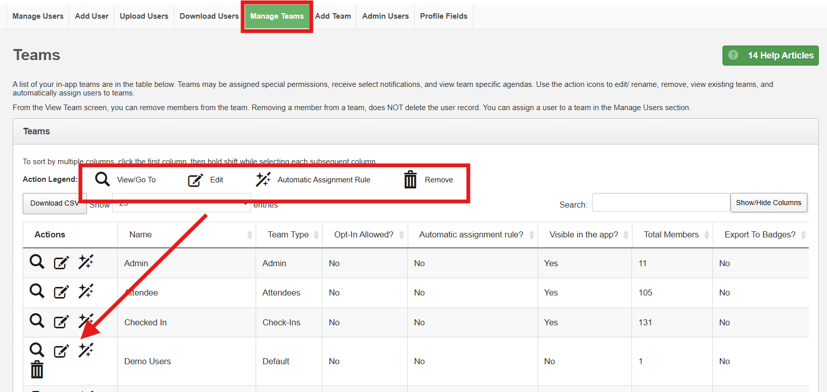 From the Manage Teams tab, you can view, edit, automatically assign and remove.